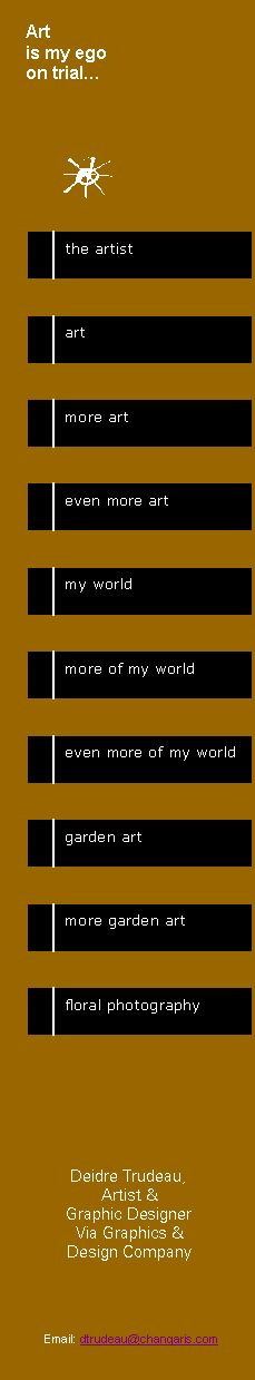 "I feel it is imperative to explore a wide range of approaches and techniques in everything I do. This keeps the process stimulating for myself and unique to the viewer." With two decades of extremely diversified and superb work under her belt, Deidre Trudeau has enjoyed both praise and respect in the professional design and fine art communities throughout the United States. Within these, Deidre stands out as original, experimental and highly creative. She demonstrates extreme diversity in her style and expression thou her artistic intent is always direct.